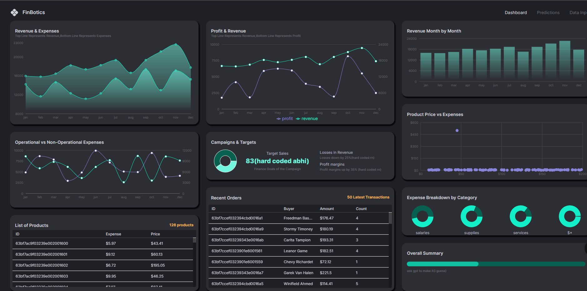 An AI-driven MERN stack finance dashboard offering interactive analytics, visualizations, and machine learning predictions for smarter small business decisions.