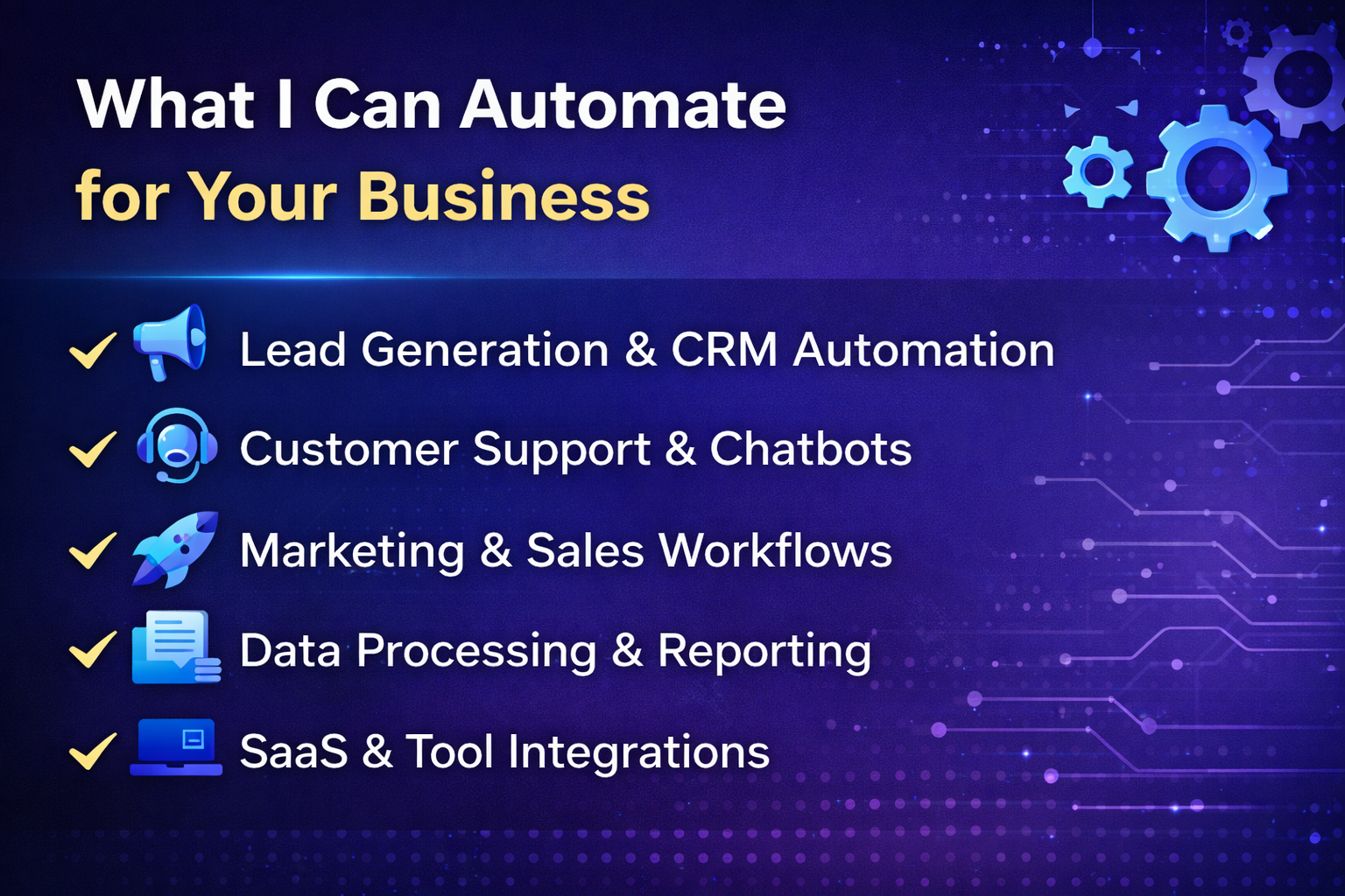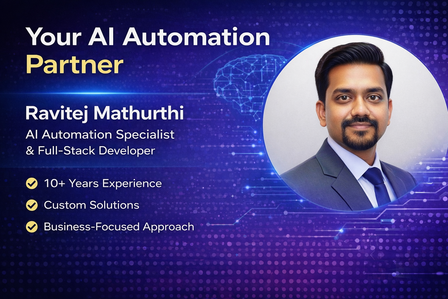 I provide AI-driven business automation solutions that help companies streamline operations, reduce manual work, and scale faster using smart workflows and modern technology. I design and implement custom automation systems tailored to your business processes, integrating AI tools, APIs, and software platforms to improve efficiency and productivity. 🔹 What I Deliver • AI-powered workflow automation using tools like n8n, APIs, and AI agents • Business process automation (CRM, sales, support, marketing, operations) • Custom AI integrations with websites, apps, and SaaS tools • Automated lead generation, customer support, and data processing • Scalable automation architecture for startups and enterprises 🔹 Use Cases • Automate repetitive tasks and workflows • Integrate multiple tools into one smart system • Improve customer response time with AI chatbots • Optimize marketing and sales pipelines • Build intelligent business systems with minimal manual intervention 🔹 Why Work With Me • 10+ years of experience in technology and digital transformation • Strong understanding of both business and technology • Custom-built solutions (not generic templates) • Clear communication and reliable delivery • Focus on measurable business results 🔹 Ideal For Startups, SMEs, agencies, and enterprises looking to leverage AI and automation to grow faster and operate smarter. If you want to automate your business processes and build scalable AI-driven systems, I’m ready to help.