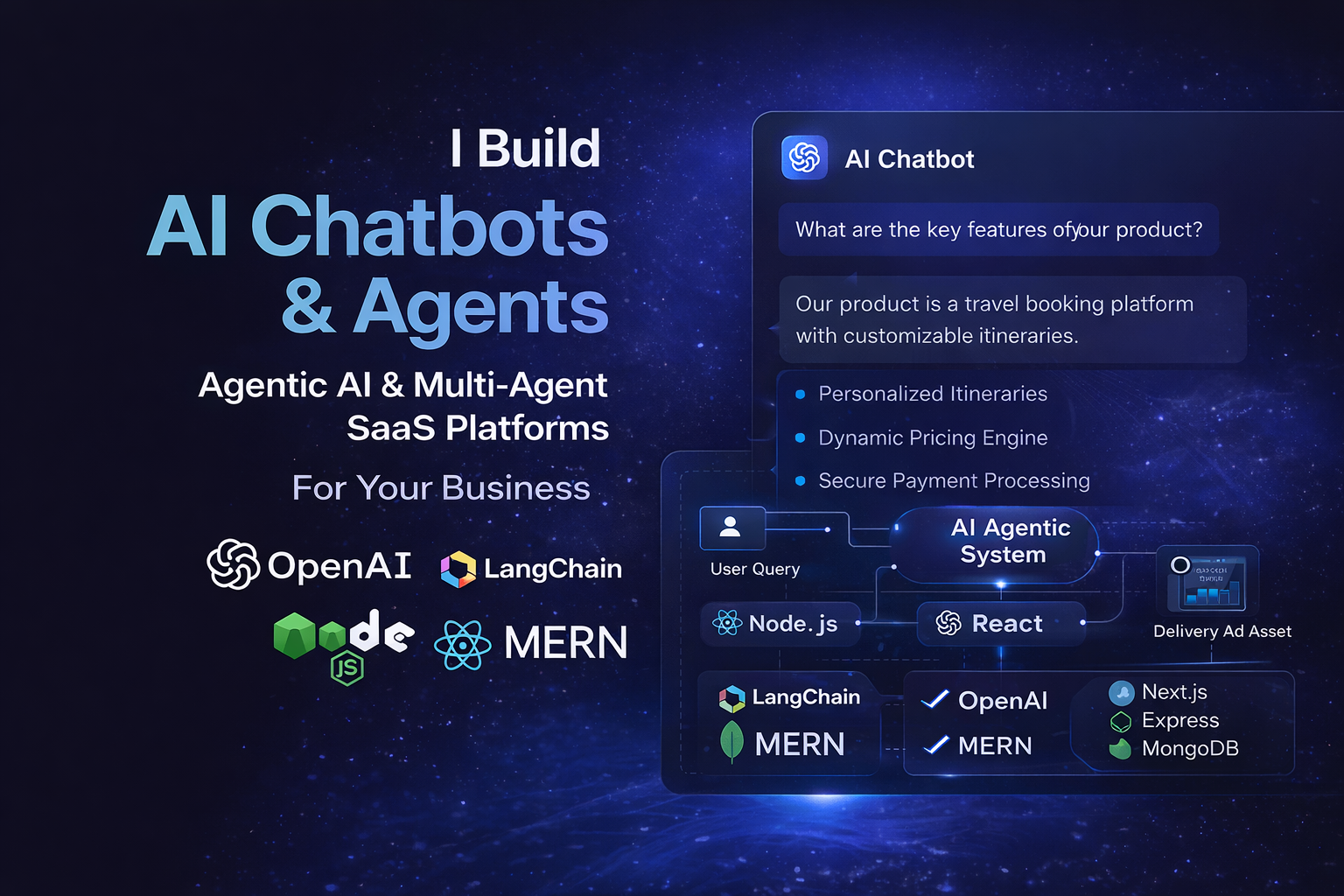 Build Powerful AI Applications, Chatbots & Scalable Web Platforms Are you looking to automate your business, build intelligent AI systems, or launch a scalable web application? You're in the right place. I am a Full Stack AI Engineer with 4+ years of experience specializing in: • AI Agents & Multi-Agent Systems (LangChain, CrewAI, LangGraph, AutoGen) • RAG-based Chatbots (OpenAI, Pinecone, Semantic Search) • Full Stack Development (MERN, Next.js, TypeScript) • API Development & Third-party Integrations • Automation Tools & AI Workflows 💡 What I can build for you: ✔ AI Chatbots (Customer support, SaaS, internal tools) ✔ RAG systems with your custom data (PDFs, websites, databases) ✔ AI Agents to automate business workflows ✔ Full-stack SaaS applications with AI integration ✔ Travel, booking, or marketplace platforms ✔ REST APIs and backend systems ⚡ Why choose me: • Real-world production experience (AI + travel platforms + automation systems) • Clean, scalable, and maintainable code • Fast communication & reliable delivery • Focus on business impact, not just code Whether you're a startup, founder, or business owner — I can help you turn your idea into a powerful AI-driven product.